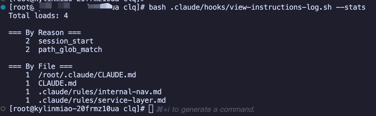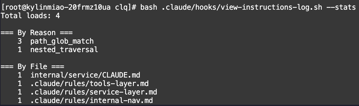 view-instructions-log.sh 读取日志 → 展示/统计path-scoped rule与级联 CLAUDE.md 的按需加载是否真实有效?