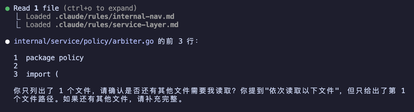 → 检查 /etc/claude-code/.claude/rules/ 和 ~/.claude/rules/